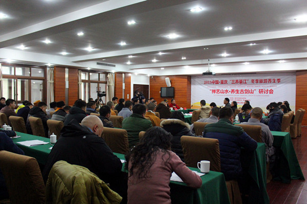 12月18—19日,“禪藝山水·養(yǎng)生古劍山”研討會及系列活動在重慶綦江古劍山禪藝山水養(yǎng)生度假區(qū)隆重舉辦。市政協(xié)部分老領(lǐng)導(dǎo)、綦江區(qū)主要領(lǐng)導(dǎo)、重慶各大寺院方丈住持、各大院校專家教授、民間養(yǎng)生專家、各界企業(yè)家代表及部分養(yǎng)生愛好者參加了相關(guān)活動。研討會特別邀請市佛教協(xié)會會長、梁平雙桂堂方丈身振大和尚到會主持古劍山凈音寺祈福大法會。院長李永明受身振法師邀請,同期到會考察,并與身振法師就弘揚(yáng)佛法、如何將禪宗禪修與養(yǎng)生旅游相結(jié)合等話題進(jìn)行專門晤談。