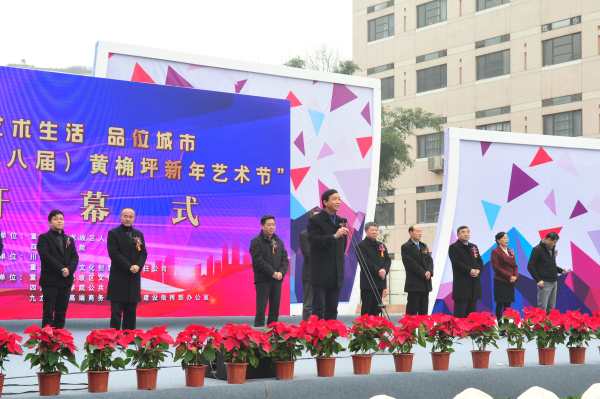 市旅游局長劉旗宣布2016(第八屆)黃桷坪新年藝術(shù)節(jié)正式開幕。